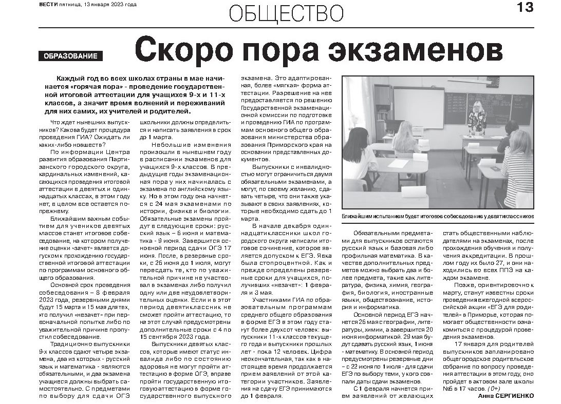ГИА | Администрация муниципального округа город Партизанск Приморского края