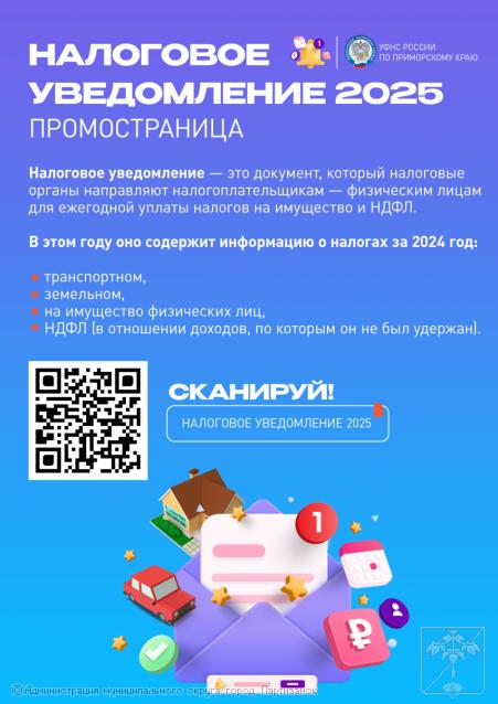 Более подробную информацию о порядке получения уведомлений и уплате имущественных налогов можно получить при помощи специальной промостраницы «Налоговое уведомление 2025», размещённой на официальном сайте ФНС России.