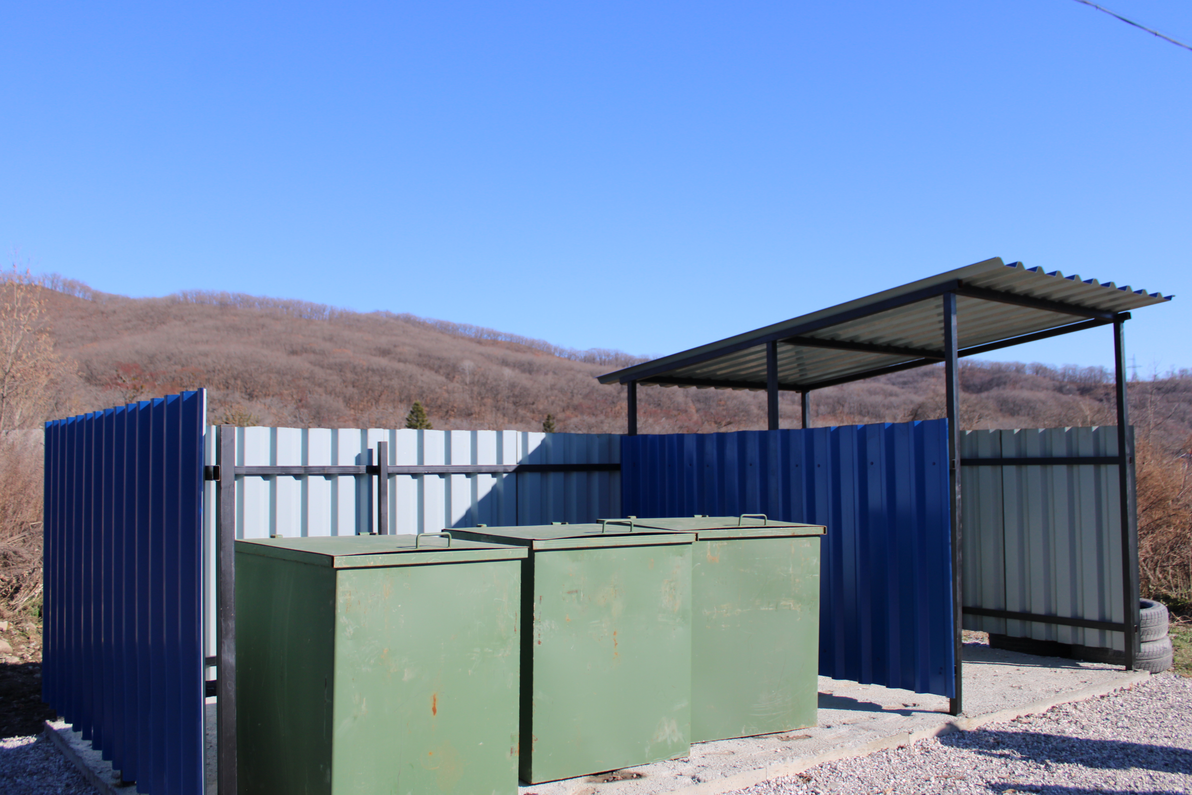 Обустроено четыре мусорных площадки с мусорными баками (по 3 на каждой площадки) и с крытыми коробами для сбора крупногабаритного мусора.