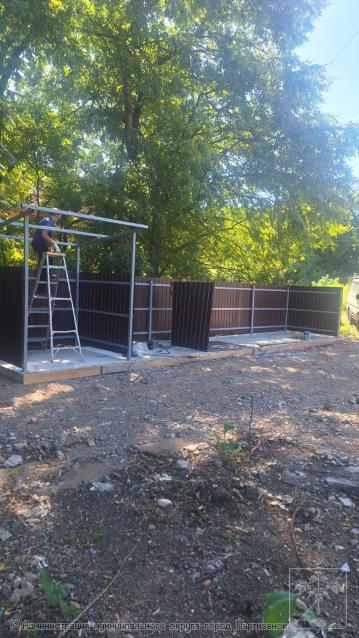 Благоустроено 2 большие площадки накопления ТКО, с отделениями для КГО, установлены новые мусорные баки с крышками по 8 штук на каждую площадку.