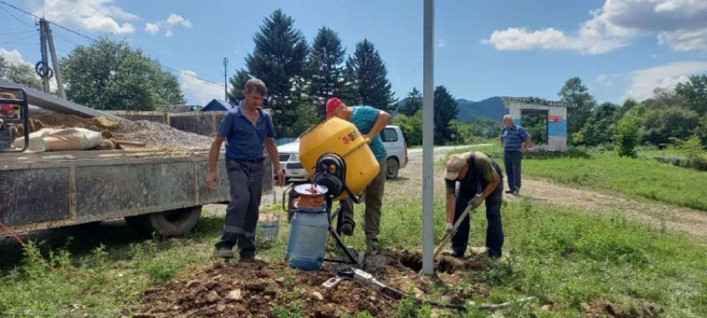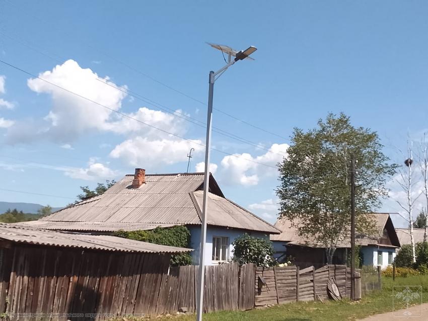 Установлено 20 опор и фонарей освещения на солнечных батареях.