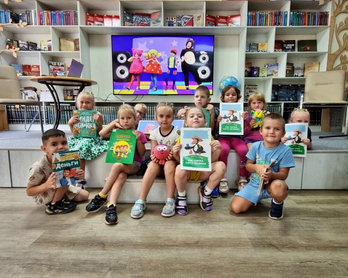 Библиотекарь показала интересные книги о деньгах и финансах для детей разных возрастов. Чтобы закрепить знания, ребята играли в игру с кубиком, отвечая на вопросы: «Что можно купить за деньги?» Они узнали, что не всё продается: воздух, дружбу, любовь и небо нельзя купить ни за какие деньги.