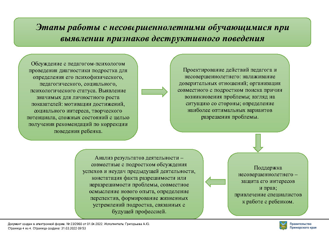 Алгоритм поведения педагогических работников и администрации