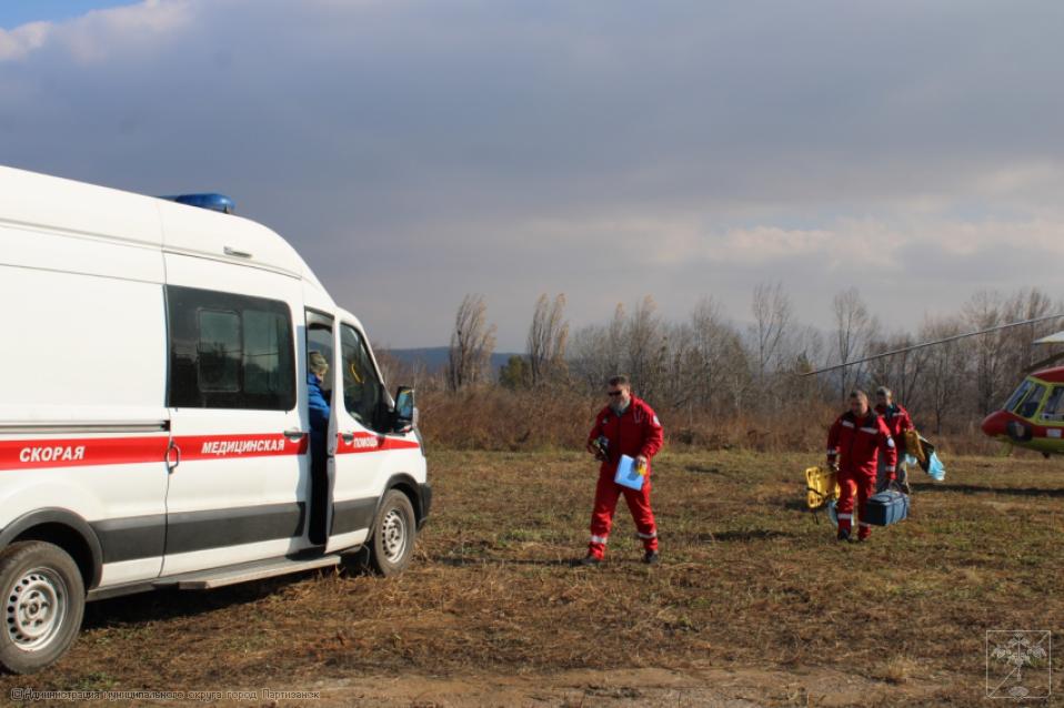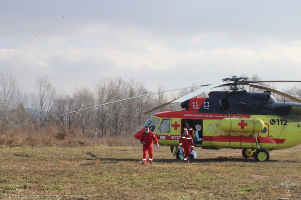 Сегодня утром рабочих, получивших травмы во время ведения ремонтных работ в м-не Лозовый, вертолетом санитарной авиации отправили в г. Владивосток, где им будет оказана дальнейшая необходимая помощь.